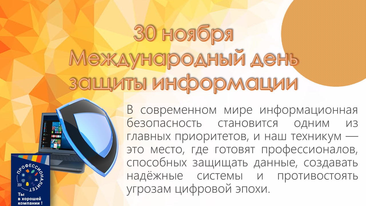 В современном мире информационная безопасность становится одним из главных приоритетов, и ваш техникум — это место, где воспитываются профессионалы, способные защищать данные, создавать надёжные системы и противостоять угрозам цифровой эпохи.
