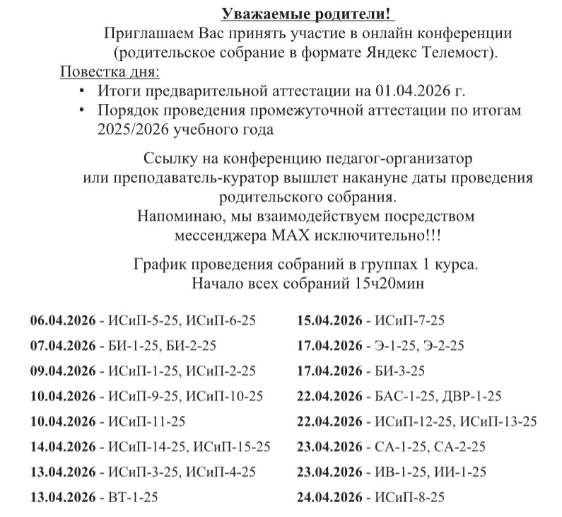 Информация для студентов и их законных представителей